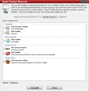 كل الذي ذكرناه أعلاه قد يكون من الصعب إزالته من المتصفح وخصوصاً أشرطة الأدوات والإضافات المخفية والتي تعمل على عرض إعلانات مزعجة يمكن أن نقوم بتحميل أداة Smart Toolbar Remover وهي اداة مجانية تماماً لتنظيف المتصفحات من تلك البرمجيات الضارة.
