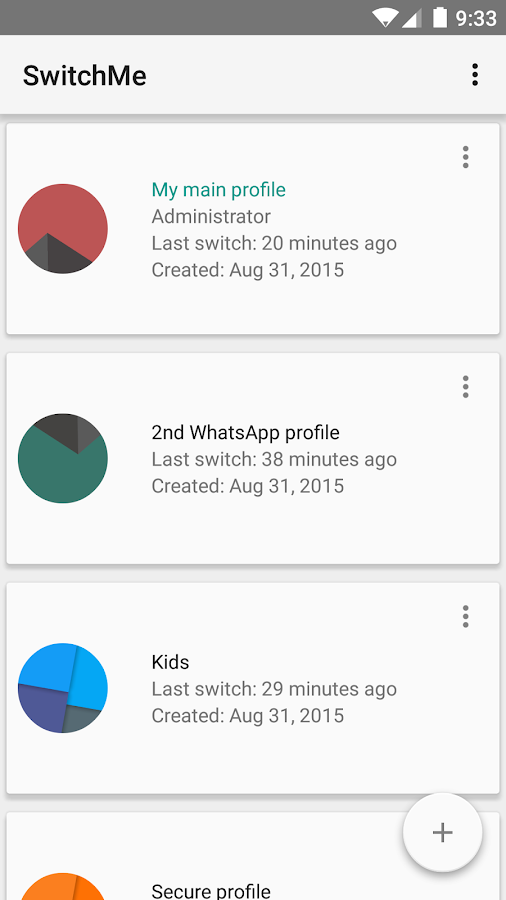 الخطوة الثانية : بعد الإنتهاء من تثبيت تطبيق Switch Me على هاتفك قم بفتحه وقم بإنشاء حسابين مختلفين ، هذا سيجعل كل حساب يعمل بنظام تشغيل خاص به كما سيتوفر كل واحد منهما على بياناته وتطبيقاته.